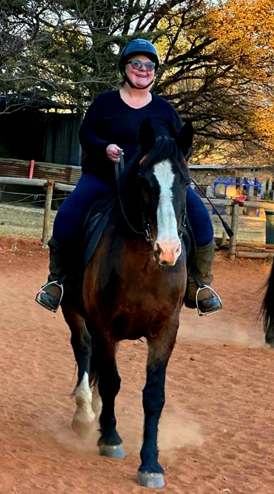 Ek’t eers gedink dis nou tyd vir rustig raak en dat ek net myself, my tuintjie en my twee klipkouende Pekingese aan die lewe moet probeer hou. Noudat ek oor my wobble begin kom, irriteer die passiwiteit my en wil ek weer voluit begin leef terwyl ek nog asemhaal. Ek het dus weer versigtig begin ry op beskikbare perde met wie ek nog verhouding moet bou. Aangesien ek eers op die ouderdom van 57 begin ry het, en Sam my opgepas het, is dit nogal ‘n risk wat ek neem. Ironies: toe ek nog deelgeneem het aan Western Mounted Games skoue, was die leuse op my klubhemp: Confidence, Speed and Precision. Ek’t dan gesê die jongeres kan maar die speed doen, ek doen die confidence en precision. My afrigter het dan met ‘n smile agter haar hand kwytgeraak: “Sy doen nie die precision ding nie”. Ek was nogtans trots op wat ek kon regkry met slegs confidence. Op hierdie stadium oefen ek nou net om my confidence te herwin. Dankbaar oor die nuwe uitdagings en ritmes wat ek nie sonder my sout-van-die-aarde maplotter tribe en die natuur as my sanctuary sou waag nie.